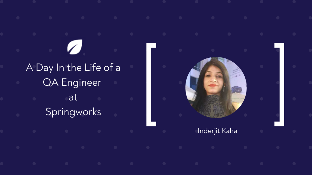 Inderjit joined Springworks in May 2021 as QA Intern. After completion of her internship, she onboarded us full-time as QA Engineer. Before Springworks, she had been a part of the academic field for 10 years. When COVID hit us, Inderjit decided to try and do something different in her professional life and hence applied for a position at Springworks!