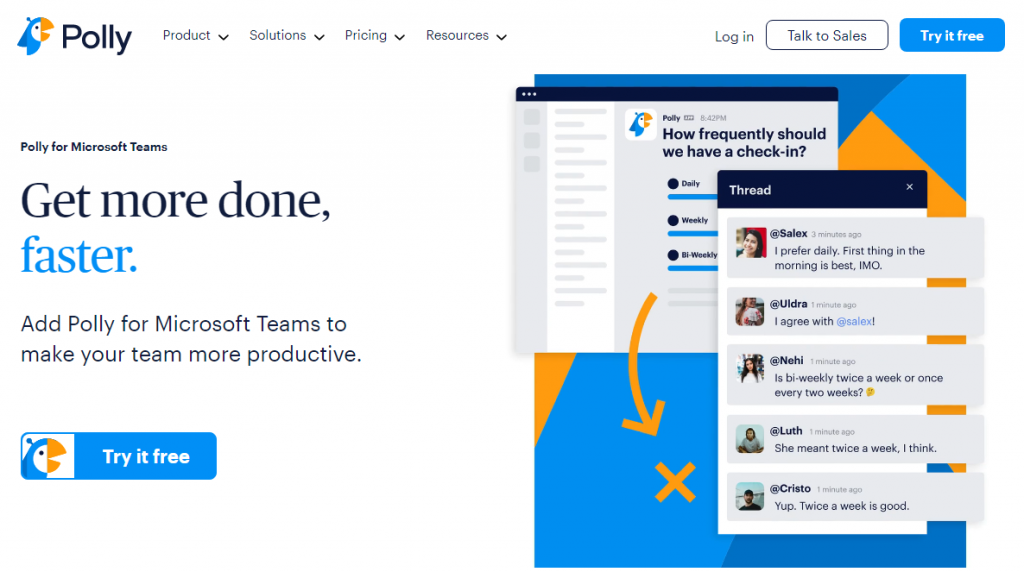 Polly is a tool to get instant feedback on Microsoft teams and other apps. It replaces survey forms and eases up the feedback process for better team building.