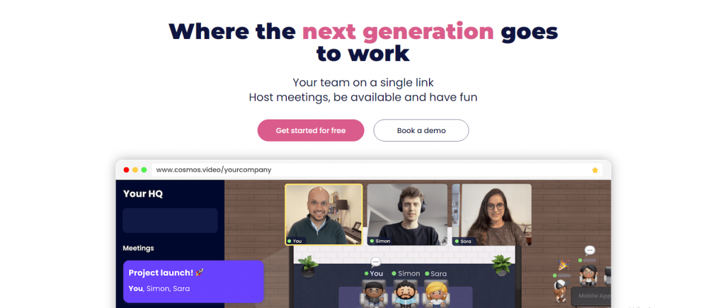Cosmos allows you to communicate faster as employees don’t have to waste time scheduling or creating links. They can hope for a meeting right away.