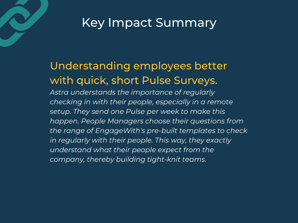 Shikhil continued, “Pulse Surveys have helped us understand our employees better and address any issues or concerns before it’s too late.”