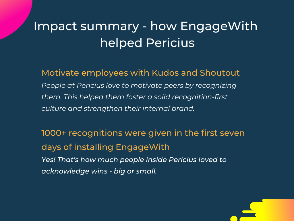 While Pericus was trying to tackle the continuously evolving employee landscape – EngageWith came in at the right time to help them in their vision towards building their dream culture. 😇