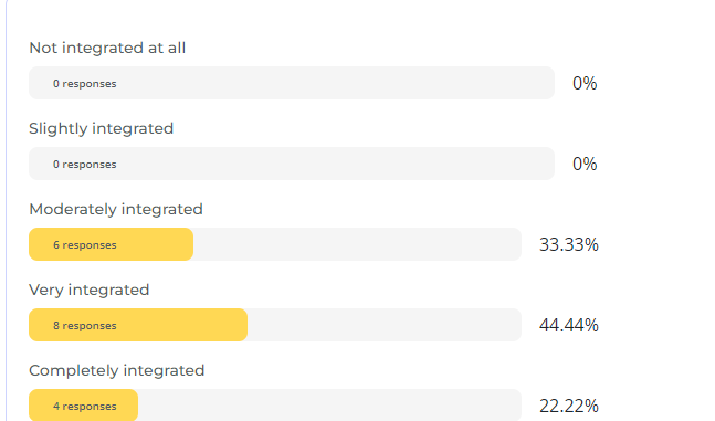 Springworks Insight: 66% felt integrated, while 34% still felt somewhat disconnected.