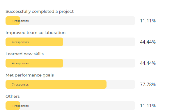 Springworks Insight: Respondents aimed to focus on learning and growth, including mastering new processes, acquiring detailed knowledge, and improving specific skills. Others prioritized completing daily tasks and achieving targets while exploring new aspects of their work.