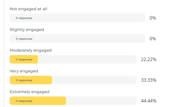 What a Positive Result Can Indicate: High engagement levels suggest that employees are deeply connected to their work and the company, indicating a positive work environment that fosters motivation, satisfaction, and loyalty. It reflects that the company is successfully meeting employees’ needs and expectations, leading to higher productivity and retention rates.