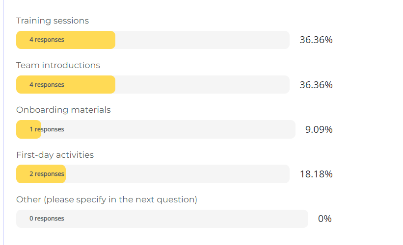 What a Positive Result Can Indicate: Positive feedback here highlights successful elements of the onboarding process that should be maintained and possibly expanded. Continuous innovation and adaptation of these practices can keep the onboarding process engaging and relevant.
