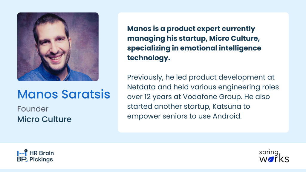 Manos Saratsis, the founder of a cutting-edge startup specializing in emotional intelligence technology. He shares insights on how emotional intelligence tools can be of use in digital workplaces.