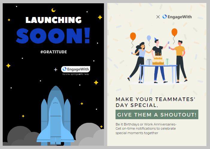 We offer a range of collaterals that you can seamlessly integrate into your presentations and org-wide announcements while engaging with your team regarding the launch. Get creative, build anticipation, and foster enthusiasm around this initiative. This approach can effectively promote employee adoption right from the start. For example, one of our customers put up some flyers to build anticipation before the launch.