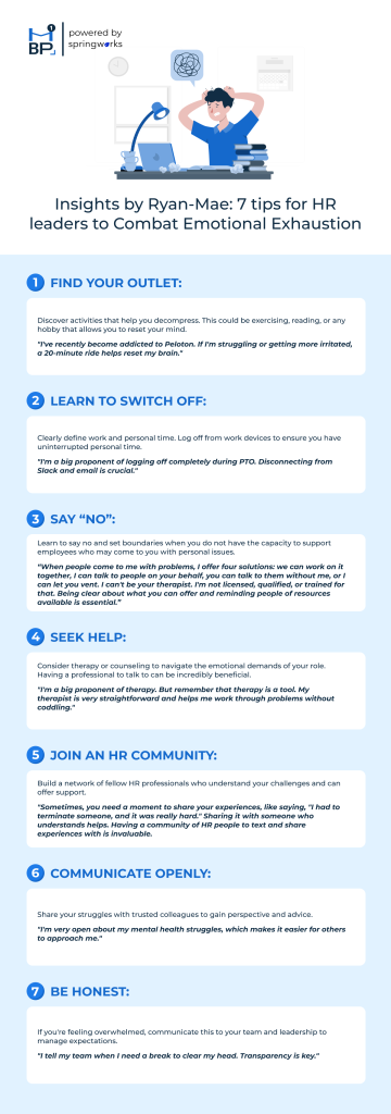 Ryan-Mae McAvoy’s insights offer a crucial roadmap for HR professionals facing these challenges. Her focus on self-care underscores the reality that you can’t pour from an empty cup. As HR continues to evolve, these principles will be key to ensuring the well-being and effectiveness of HR leaders and their teams.
