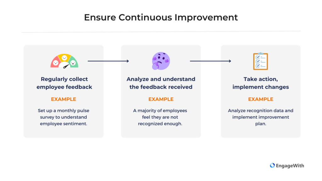 - Feedback Collection and Analysis: Collect feedback from your team and analyze the engagement data to find where you can make improvements.