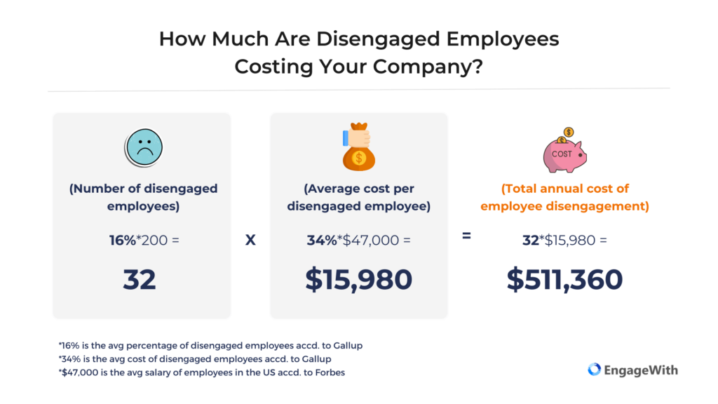 It is important to acknowledge that the following figures, which highlight the financial consequences of disengagement, are based on research conducted by Gallup in the field of employee engagement. These numbers should be regarded as approximations and are intended for reference purposes only.