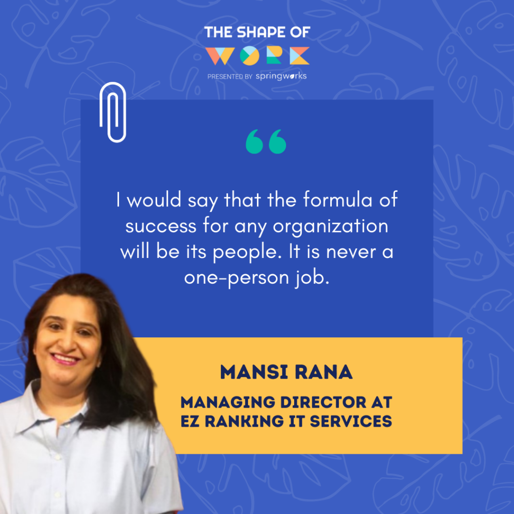 A business-oriented leader and an HR professional, Shuchi made us realize that the emotional quotient (EQ) is more valuable in the HR domain than the intelligence quotient (IQ). The pandemic shows that the people managers who succeeded in keeping their workplaces stable are the ones who do not get defeated by external/internal stress. It has been possible because of the excellent EQ they possess or have procured.